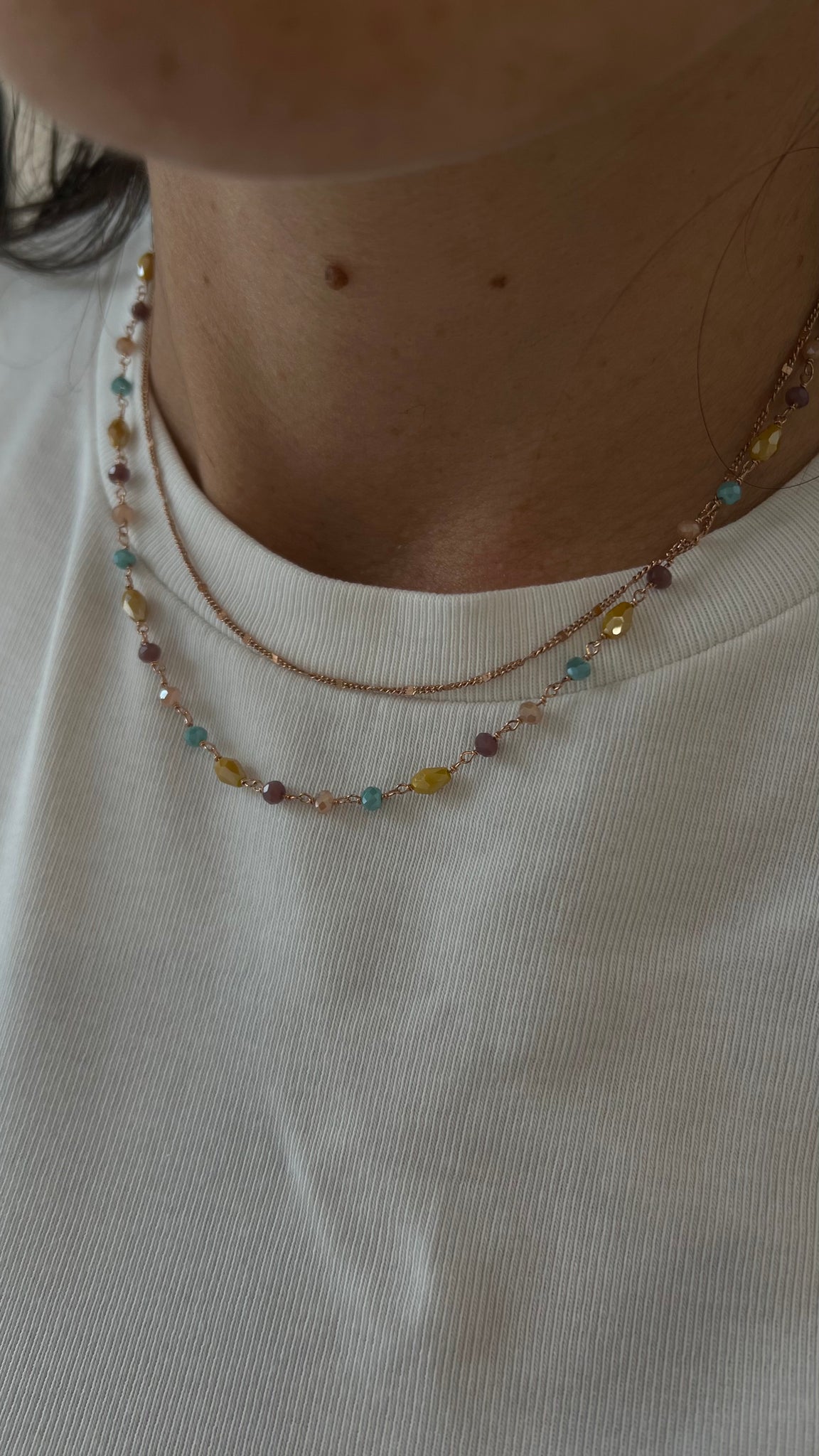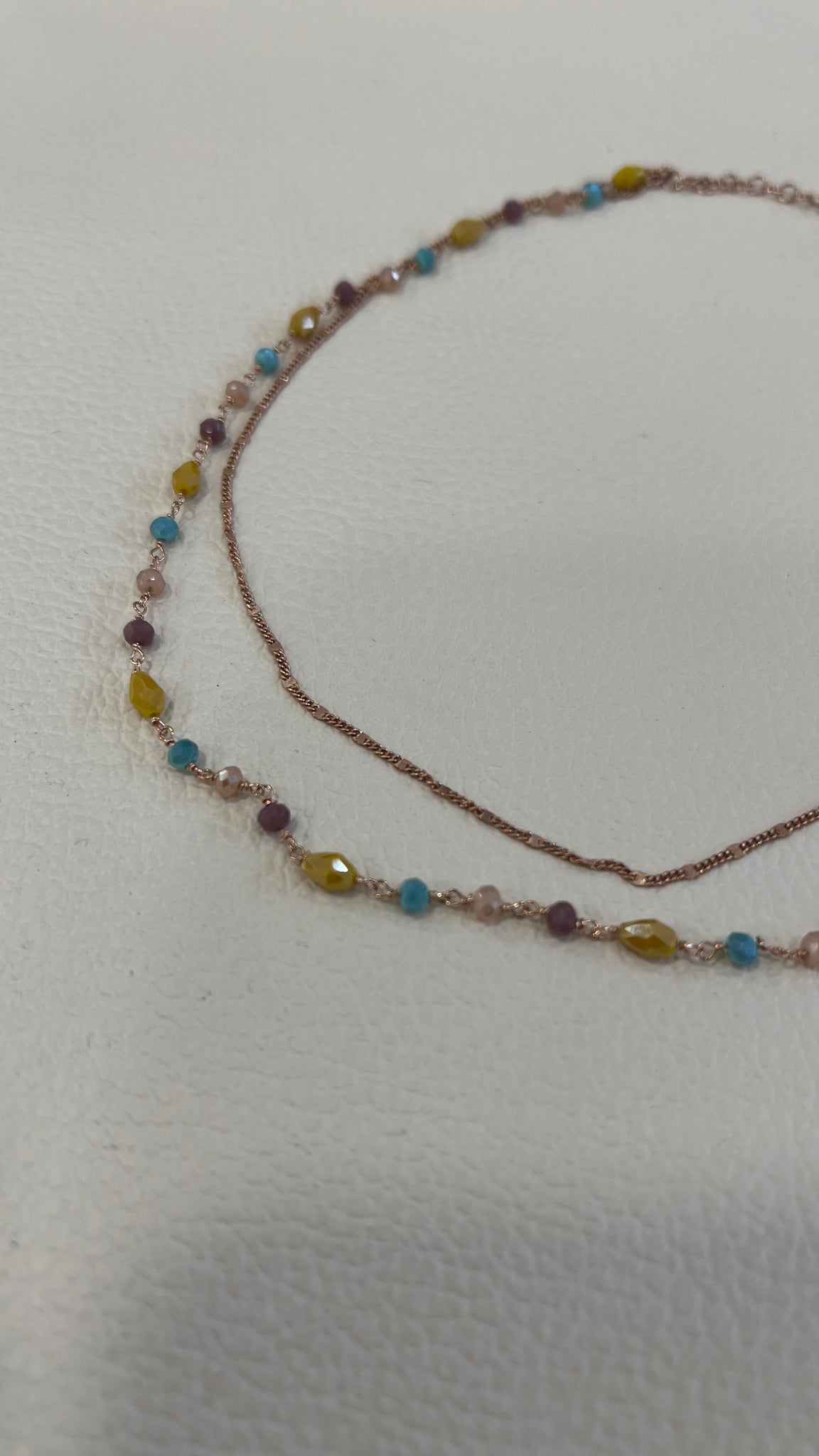 Collana doppia in argento925 placcatura rosata e cristalli. Lunghezza 36cm+5cm di regolazione